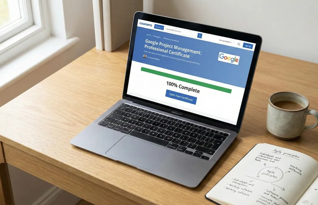 مدرک مدیریت پروژه گوگل کاملاً self-paced است و با سرعت بالاتر میتوانید زودتر تمام کنید، حتی در ۳ ماه یا کمتر.