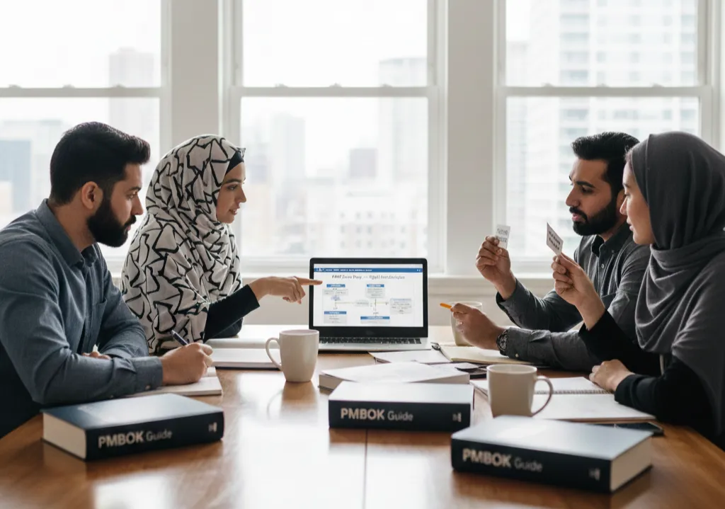 سؤالات فقط چهارگزینهای نیستند؛ انواع چندگزینهای، جای خالی، Drag-and-Drop، کلیک روی تصویر و سناریوهای طولانی واقعی هم وجود دارد که توانایی تصمیمگیری در شرایط پیچیده را میسنجد. این محتوا بر اساس راهنمای PMBOK و استانداردهای جهانی تدوین شده است.