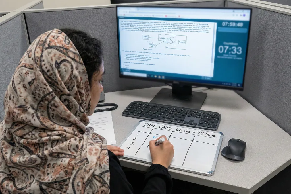 در این مدت، باید تمام سؤالات چهارگزینهای، چندگزینهای، جای خالی و سناریویی را پاسخ دهید. زمانبندی دقیق باعث میشود داوطلبان استراتژی مدیریت زمان داشته باشند و سؤالات سخت را علامتگذاری کنند.