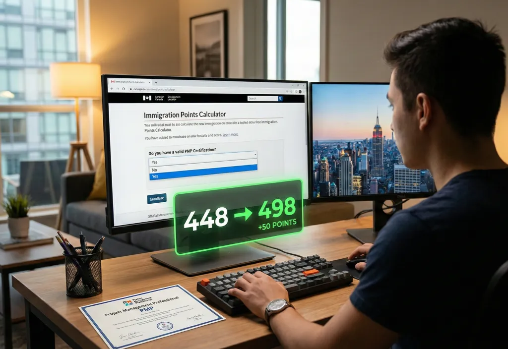 از مدرک PMP برای مهاجرت چگونه میتوان امتیاز گرفت؟ در کانادا، وقتی شغل مدیر پروژه (NOC مرتبط) را با این مدرک تقویت کنید، امتیاز تجربه کاری و مهارت بالا میرود. حتی بدون امتیاز مستقیم، PMP پرونده را قویتر میکند.